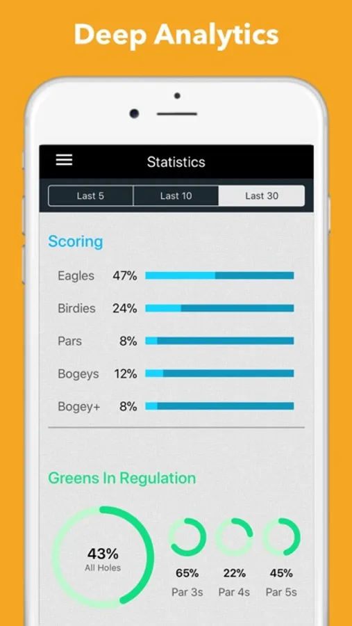 - Insightful statistics of your game, covering club distances, fairways hit, greens in regulation (GIR), and putts per hole for in-depth analysis