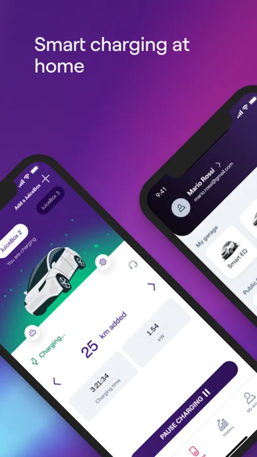 • Manage charging at home. Configure one or more Enel X Way JuiceBox chargers directly from the mobile app.