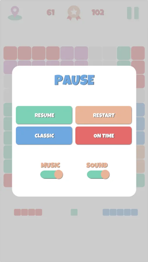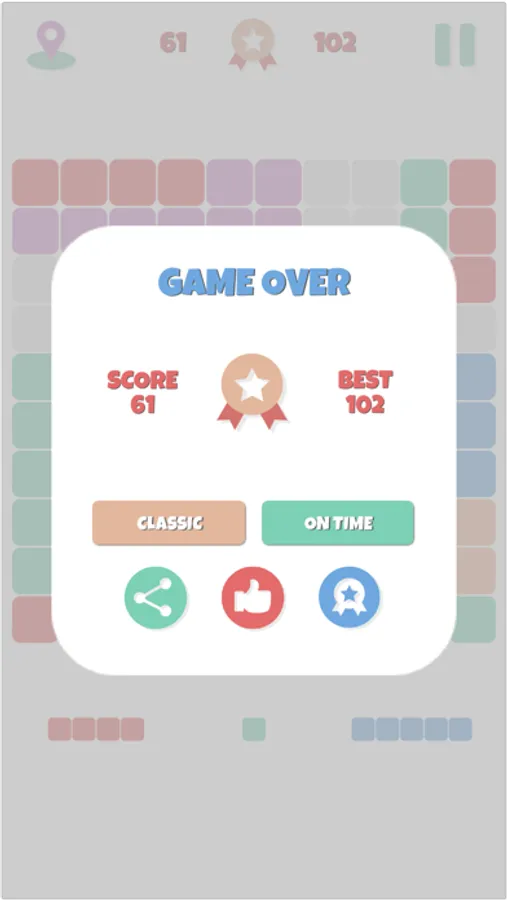 The game is over when there is no place for available blocks on the grid. In the time mode game will be finished in 2 minutes.