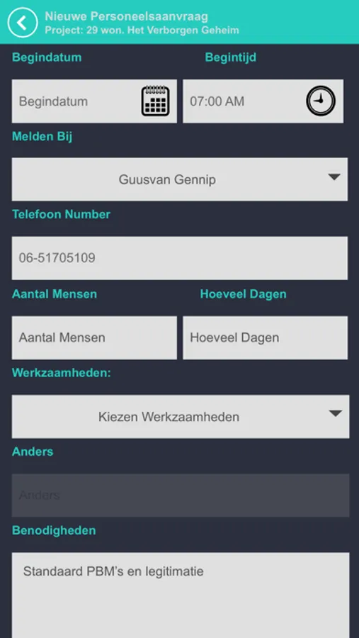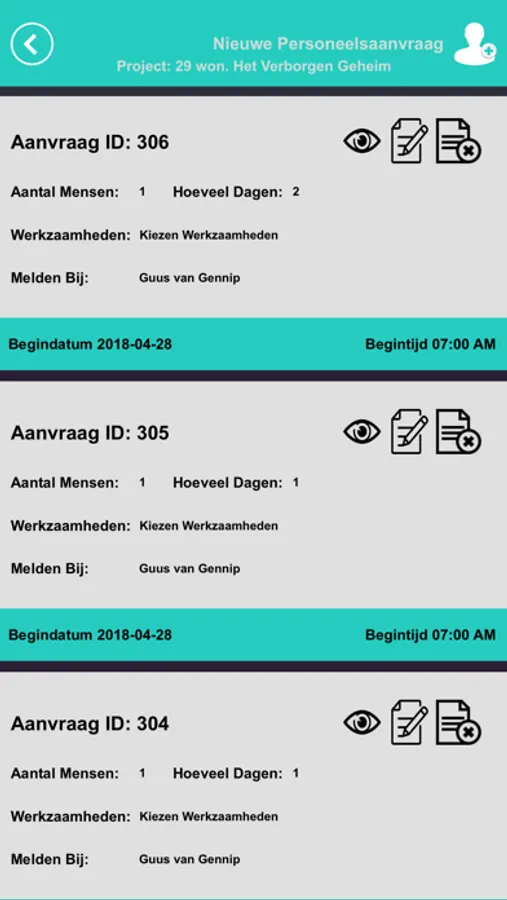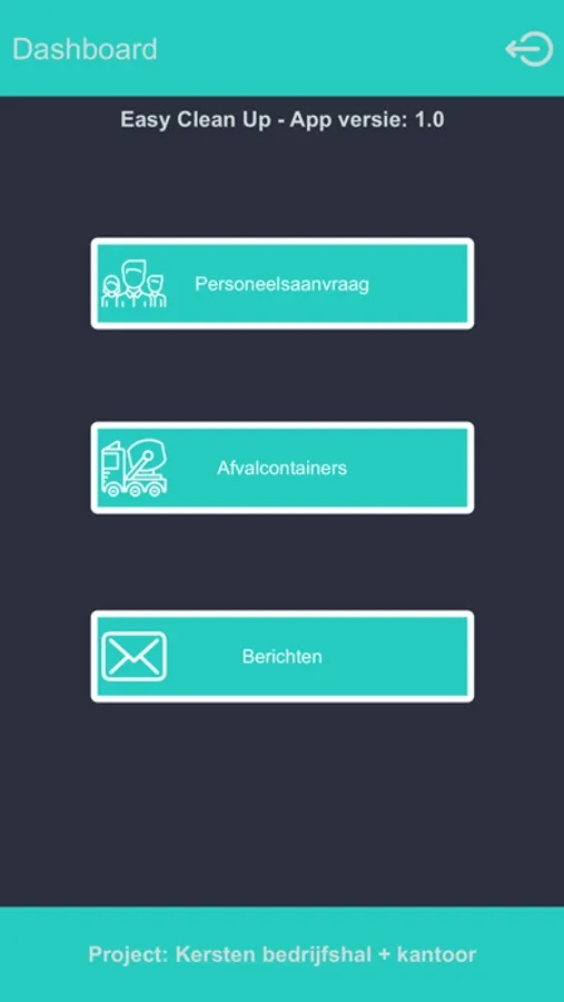 Easy Clean Up BV app voor de personeelsaanvraag, afvalcontainers bestellingen en communicatie met de administratie