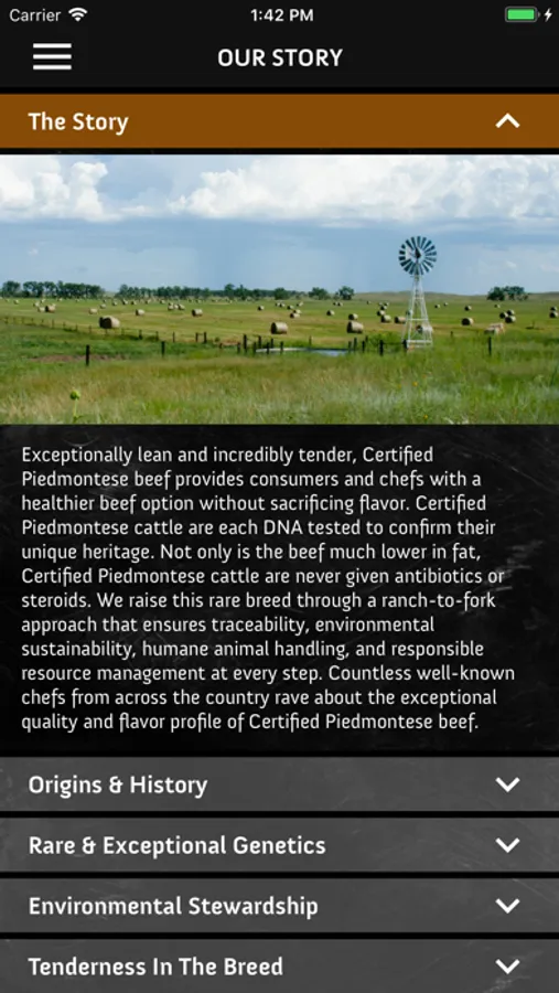 Certified Piedmontese beef is a heritage breed of gourmet beef that doesn’t rely solely on fatty marbling to achieve tenderness—now available on your iPhone. Use the Certified Piedmontese app to shop a selection of beef roasts, steaks, burgers, jerky, and other products from Certified Piedmontese, order them instantly, and have them delivered directly to your door.