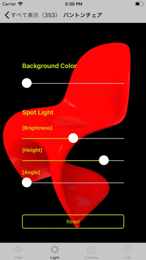 3D画像化された椅子を自由に回転、拡大して見ることができます。