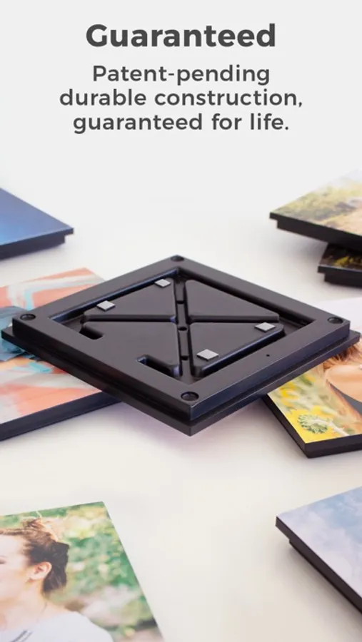 Now it’s easy to get your favorite pictures off of your phone and onto your wall. Mix and match as many photo tiles as you like to design a custom collage for any space. FreePrints Photo Tiles are lightweight photo panels that easily stick to walls with no need for a hammer and nails. And they unstick just as easily, which means you can move them anywhere you like. FreePrints Photo Tiles are custom manufactured with state-of-the-art digital printing and a durable patented (Protected by US patent no. D846,028) plastic mounting made entirely in the USA. No frame required. And they’re guaranteed for life!