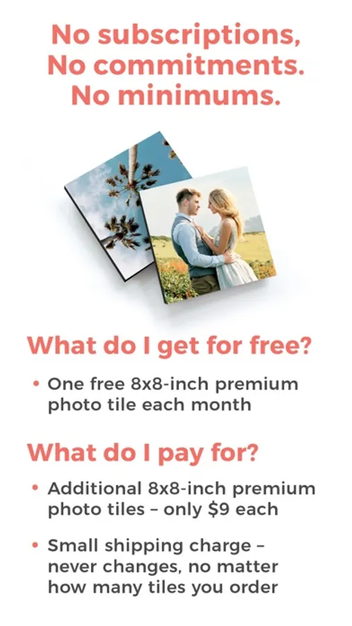• There are no subscriptions or commitments. Add photo tiles to your collection whenever you like.
