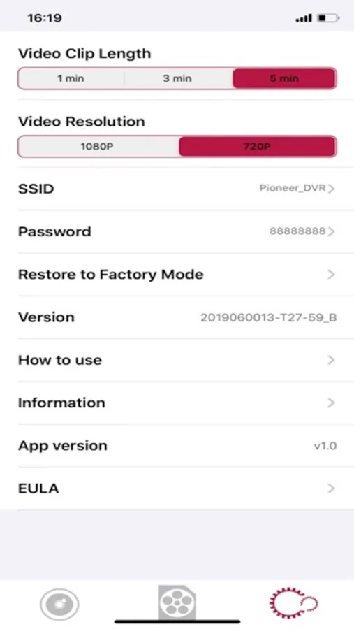 "Dash Camera Interface" is an application for connecting to the target Pioneer dash camera.
