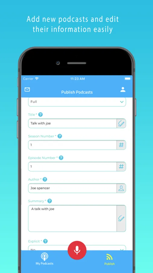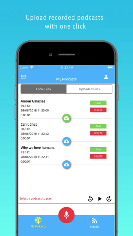 Record & Publish your podcasts, just using your mobile phone in minutes. You don't need a computer, you don't need a microphone hardware, just click record and publish your podcast to our server and share the rss feed we provide you to publish your podcast to itunes,spotify and others. We also create a free website for your podcast which you can share with anyone and they will be able to play any episode from your website directly.