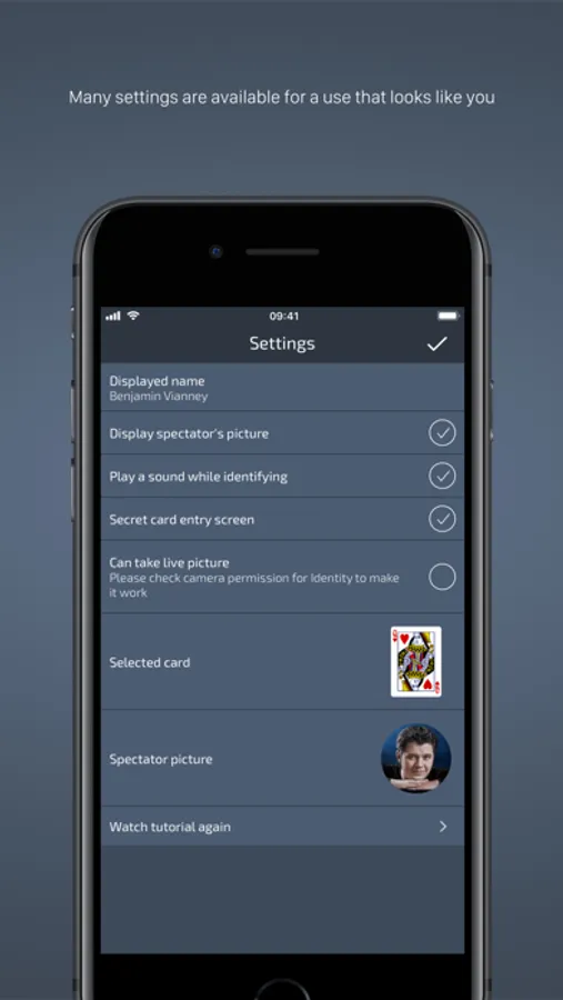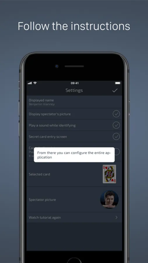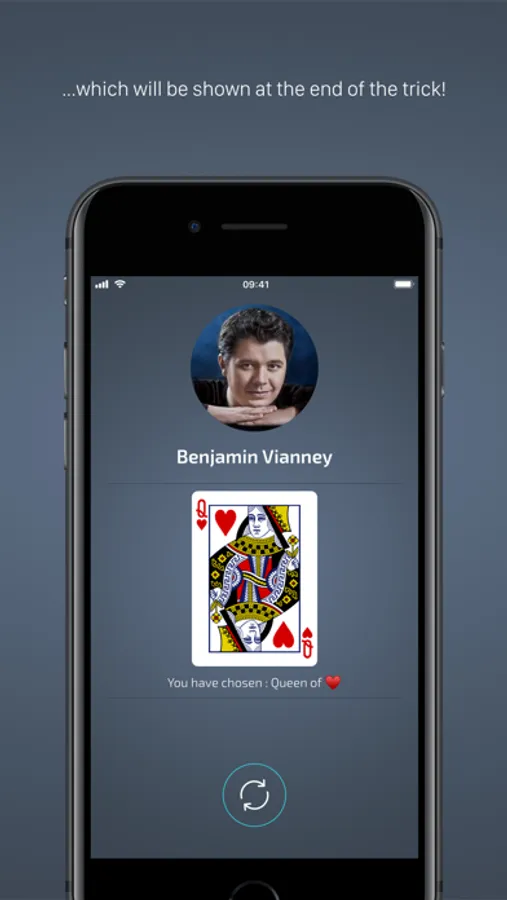 The spectator’s photo appears, along with his or her first name and chosen card.
