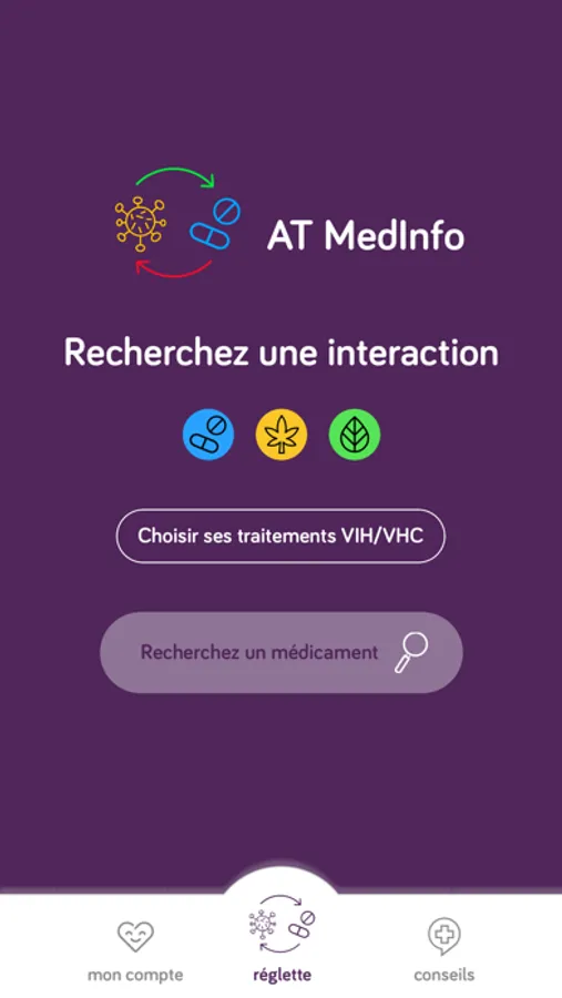 L’application AT MedInfo vérifie les interactions entre les traitements VIH/VHC et les médicaments les plus prescrits, les solutions de phytothérapie et les drogues. Cet outil a été développé par Actions Traitements, association agréée de patients, qui aide, accompagne et soutient les personnes qui vivent avec le VIH et/ou une hépatite depuis plus de 25 ans.