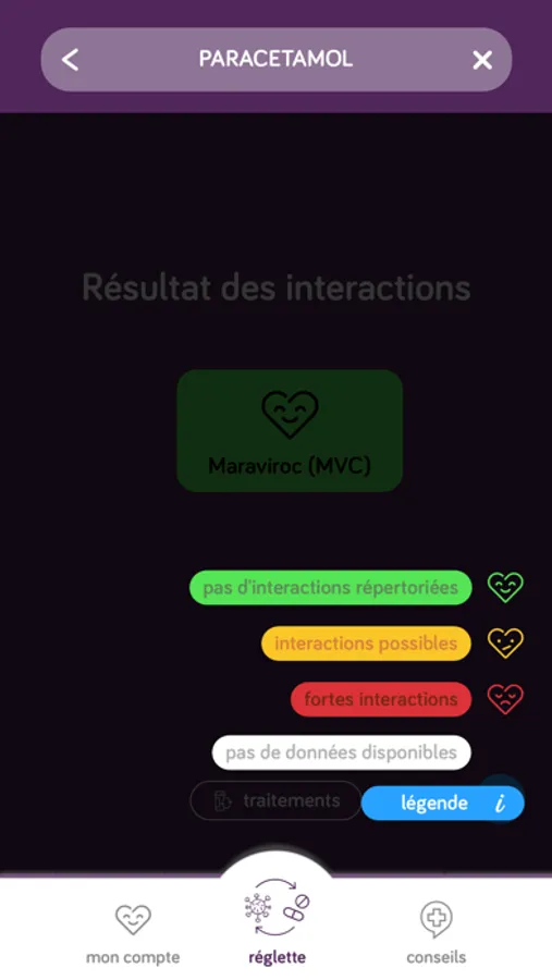 1) La réglette d’interaction qui permet de vérifier les interactions potentielles entre votre traitement VIH/VHC et le (ou les) autre(s) produit(s) que vous consommez grâce à un code couleur simple