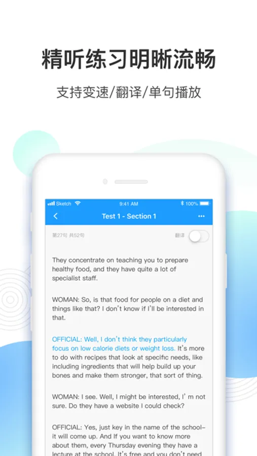 听力精听精练,变速,单句播放,雅思听写好伴侣。