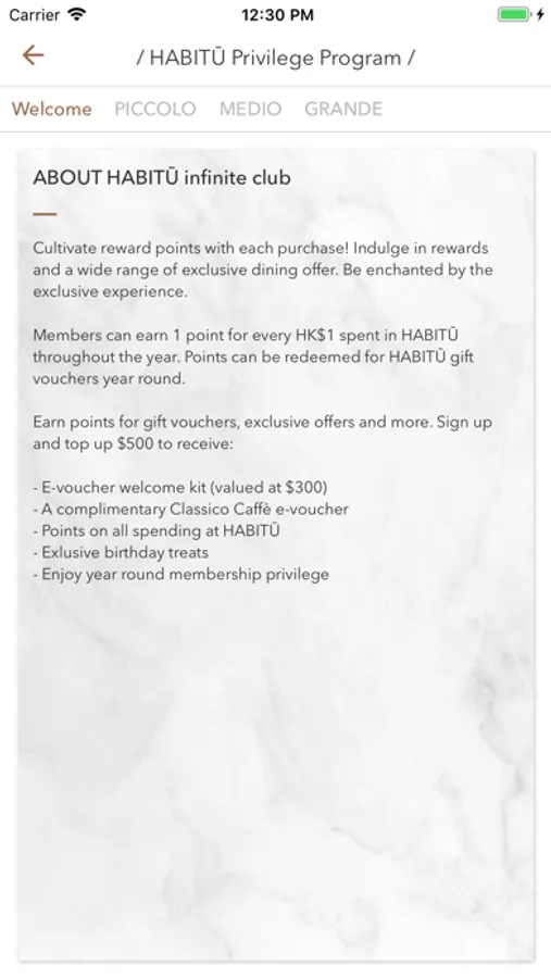 • Receive a welcome kit of e-vouchers valued at HK$300 upon topping up HK$500 to your registered account in HABITŪ app.