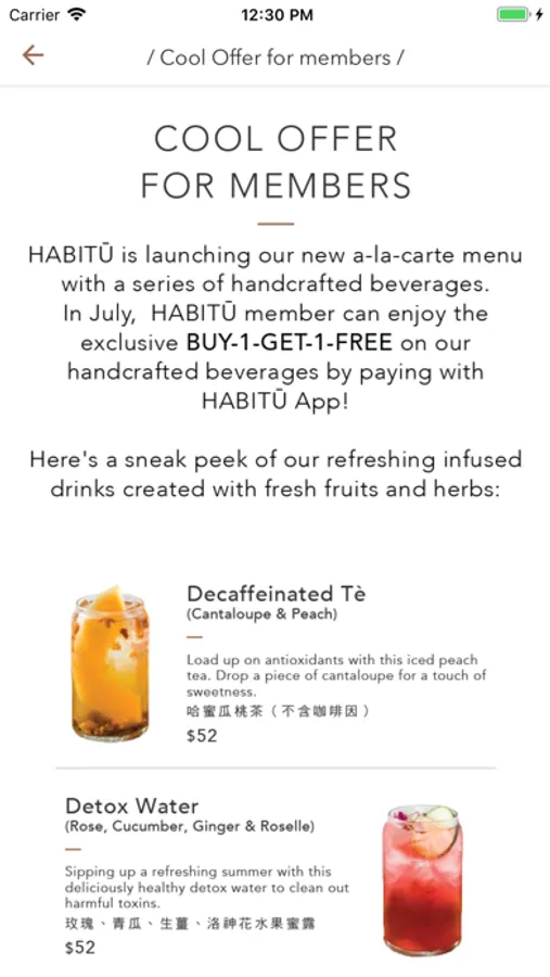 • Enjoy a complimentary Promotional Drink during the first week of launch.