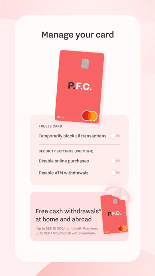 Free withdrawals up to 10 000 SEK/ month, also abroad