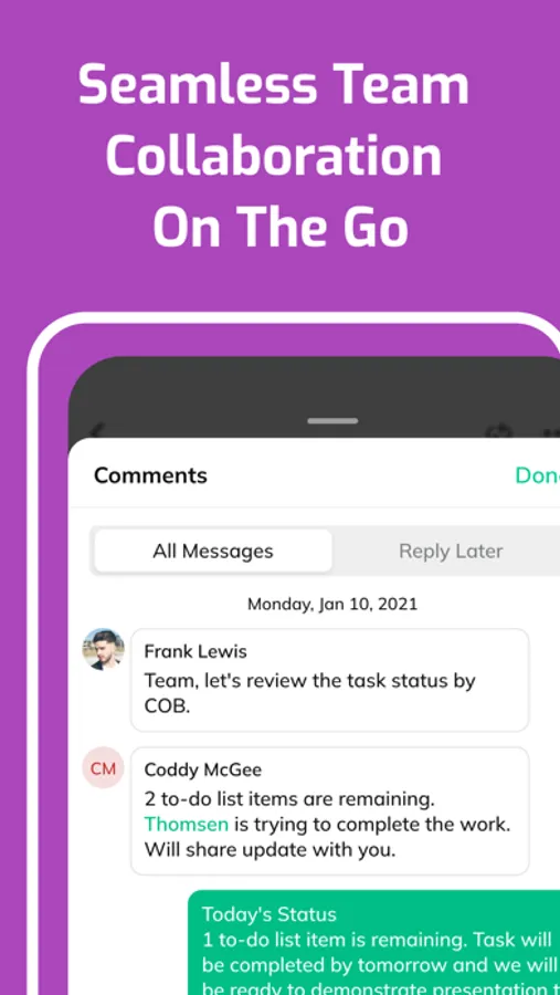 • Get real-time updates from your ‘assignees’ via our exclusive ‘@’ highlight feature.