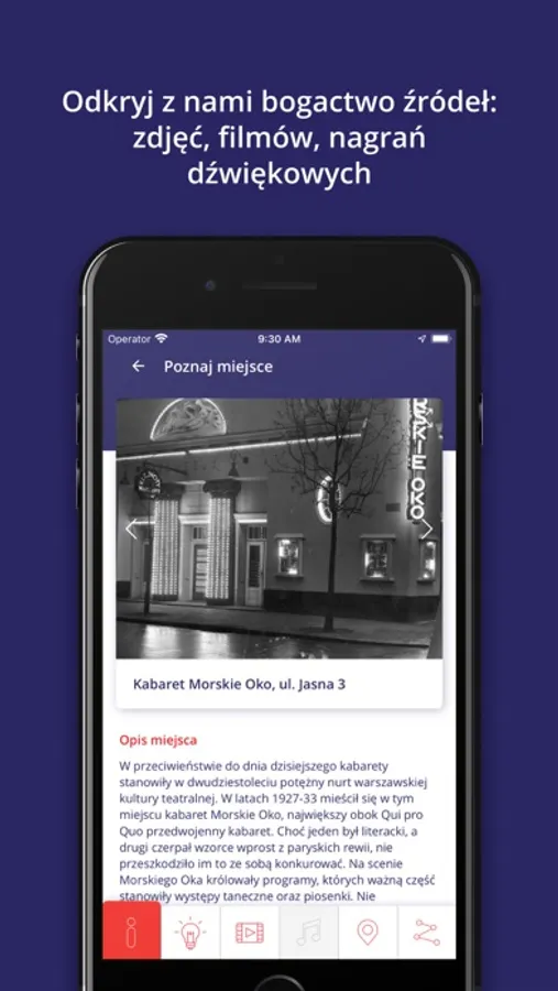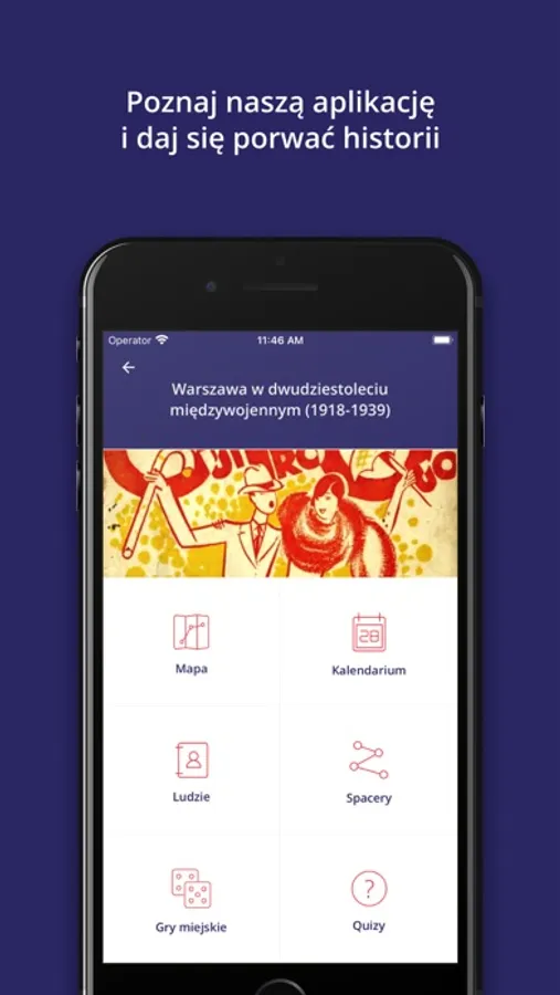 „Wasza Warszawa" łączy najlepsze cechy przewodnika i vademecum historycznego. Aplikacja, korzystając ze zdjęć, nagrań filmowych i dźwiękowych, dokumentów oraz innych świadectw, poprowadzi Was przez współczesną stolicę i przybliży pasjonującą historię miasta. Interaktywne mapy z różnych momentów XX wieku, spacery czy gry miejskie wykorzystujące technologię rzeczywistości rozszerzonej (AR) pozwolą zanurzyć się w historii stolicy.