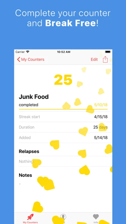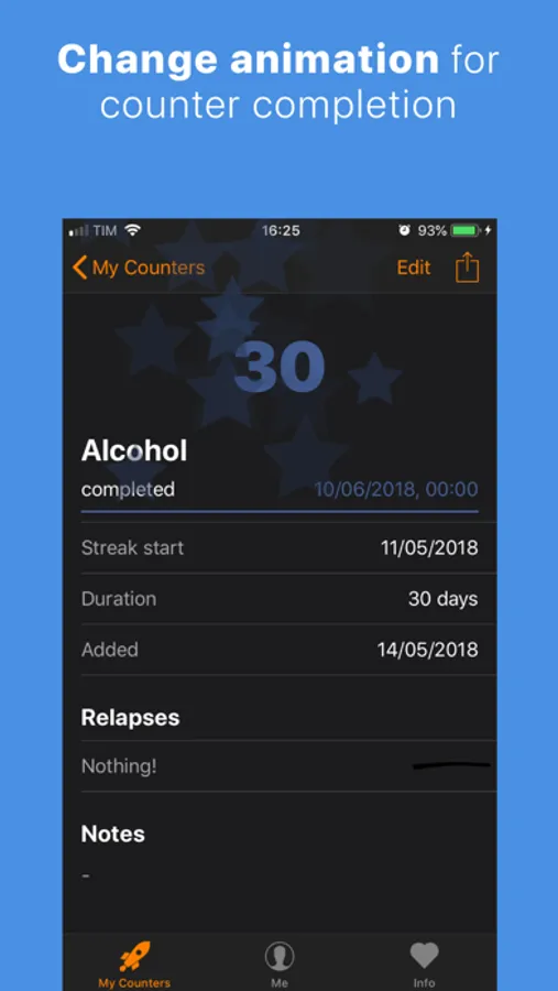 - Add notes to counters and relapses to help you identify your weaknesses.