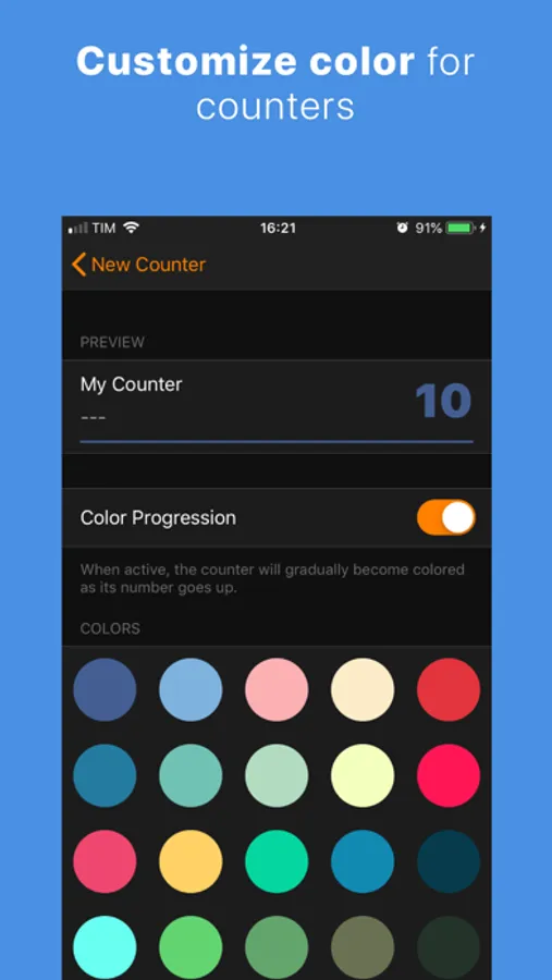 - Track counter progress from your iPhone locked screen with a cool widget.