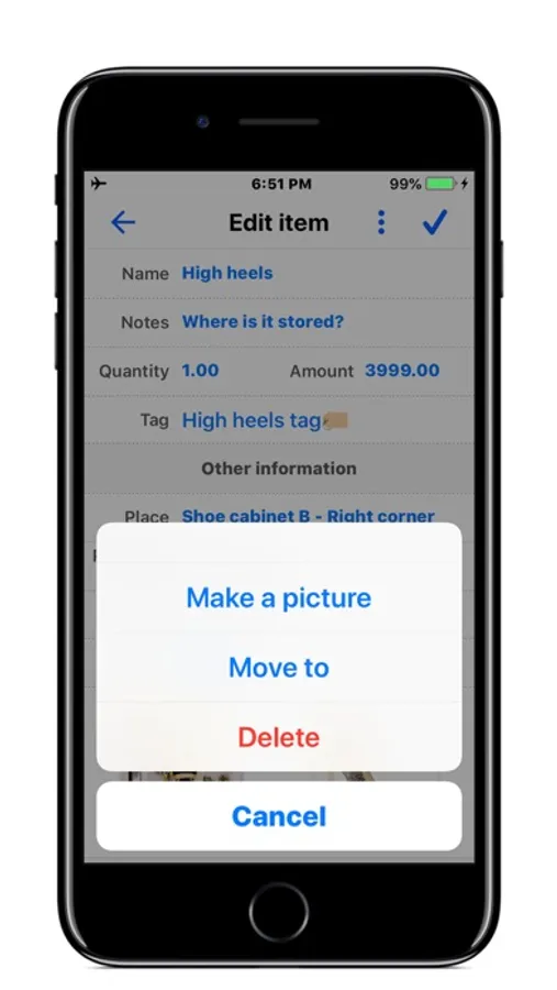• Photographs of receipts for goods invoices or warranty cards can be easily retrieved when needed.