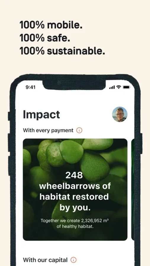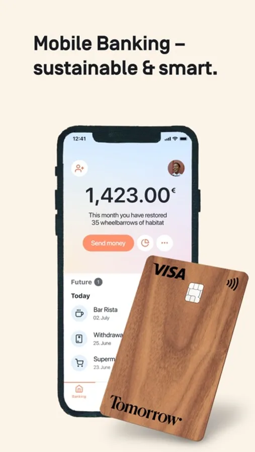 Tomorrow offers the comfort of digital banking – without compromising your values. While conventional banks use your money to invest massively in coal power, weapons and other damaging industries, we use your money to invest exclusively in sustainable industries. Additionally, you contribute to the restoration of valuable habitat every time you pay by card. And with our Rounding Up feature you can support even more sustainable projects.