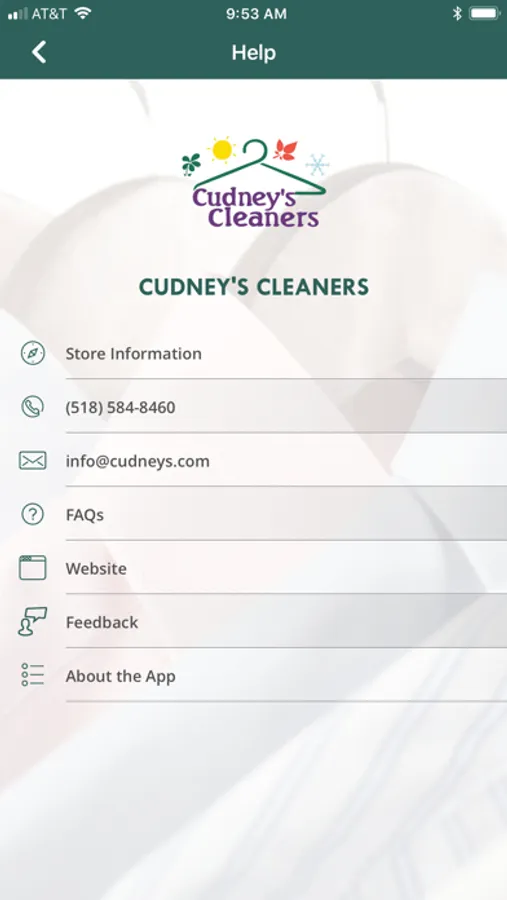 5) Quickly contact Cudney's Cleaners by phone or email and access their website all directly from your device.