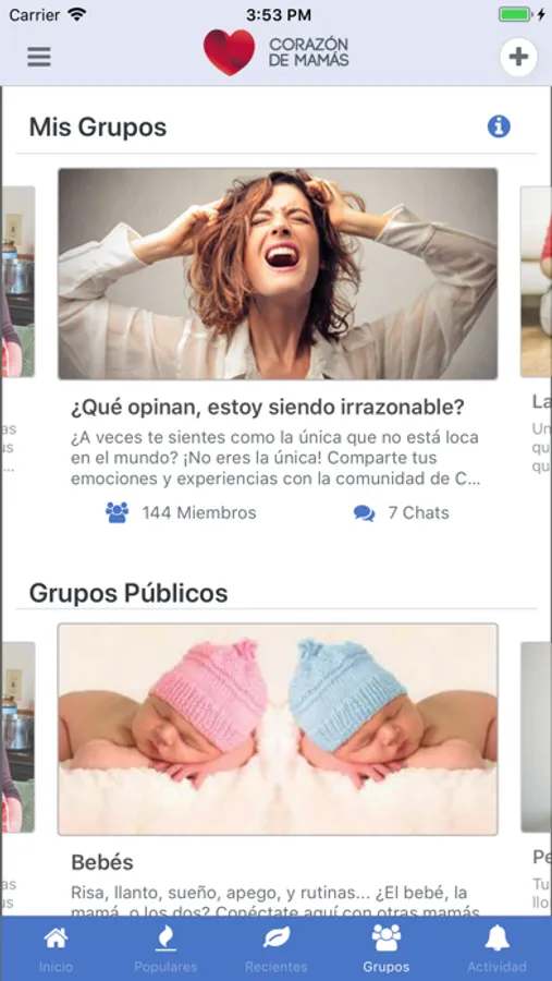 Las conversaciones (chats) en Corazón de Mamás están organizadas por grupos. Unos grupos son representativos de la fase de ser mamá en la que te encuentras, otros son más generales y son para liberar un poco de presión sin tener que pretender que todo es perfecto en el camino de ser mamá (que como bien sabemos, nunca lo es). Algunos grupos son públicos y cualquiera puede participar, otros grupos son privados y una administradora necesita aceptar tu suscripción.