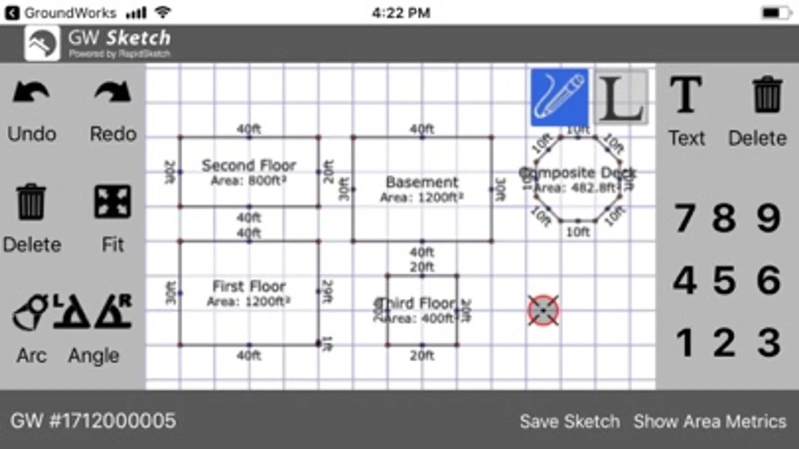 * GW Sketch will calculate Living Space & automatically log it to your GroundWorks™ Order