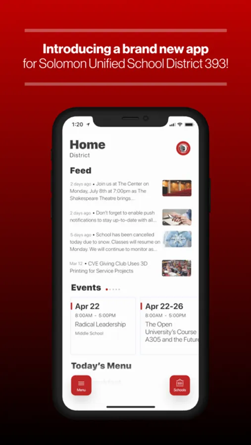 The official app for the USD 393 Solomon Public Schools allows users direct access to the most recent news, announcements and event calendars. Customize the app to display information relevant to a specific campus and to receive important notifications from the district. Users may also access the directory of district faculty and staff, view dining menus, find the location of district events, contact campuses and departments, follow athletic scores and updates, and much more.