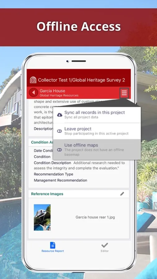 • Online and offline access. Data collected is synced to your existing Arches v4 instance when a cellular or network connection is available.