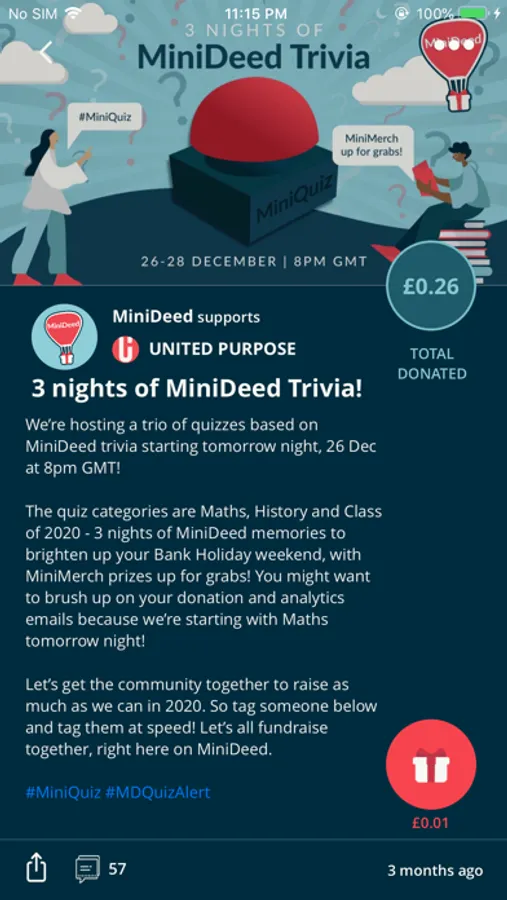 In 2020, the MiniDeed community raised £26k for some incredible causes like Refugee Action, Muslim Youth Helpline, Kijana Kwanza and more.