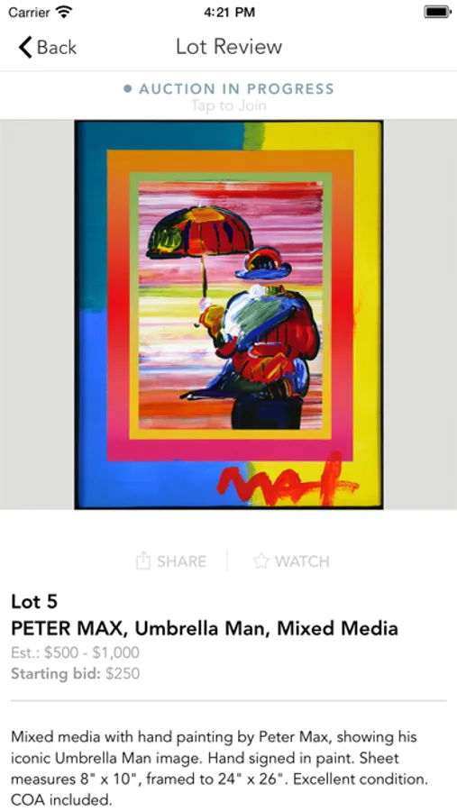 Blackwell Auctions has provided buyers with unique, sought-after items since 2016. We are located in Clearwater, Florida and conduct auctions on several online venues and in-person at our gallery. We are always accepting quality consignments and can offer consignors competitive rates and a worldwide audience for their items. With our Blackwell Auctions app, you can preview, watch and bid in our auctions from your mobile/tablet device. Participate in our sales while on-the-go and utilize features such as easy registration, push notifications to ensure you don't miss your favorite items, and access to bidding history and activity.