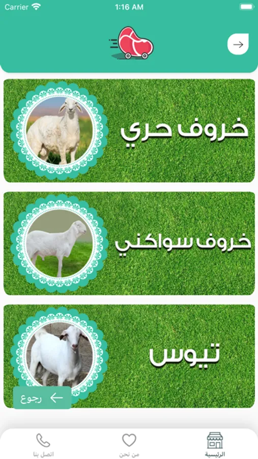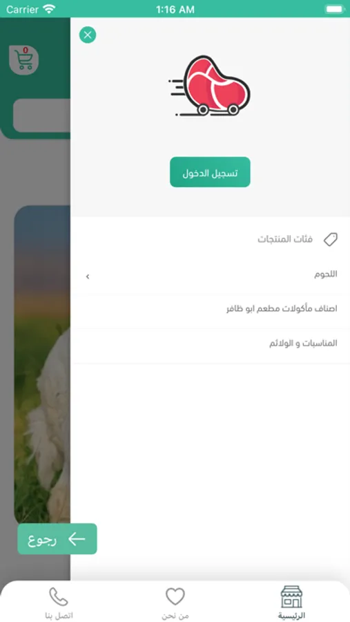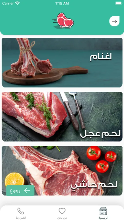 تطبيق لحوم هو تطبيق اختص في توصيل اللحوم والأسماك الطازجة للمنازل وأماكن العمل بطريقة مبتكرة وعصرية من حيث طريقة التغليف وجودة المنتجات ودقة المواعيد ، ويوفر التطبيق أيضًا خدمة اعداد الولائم وتجهيز الحفلات .