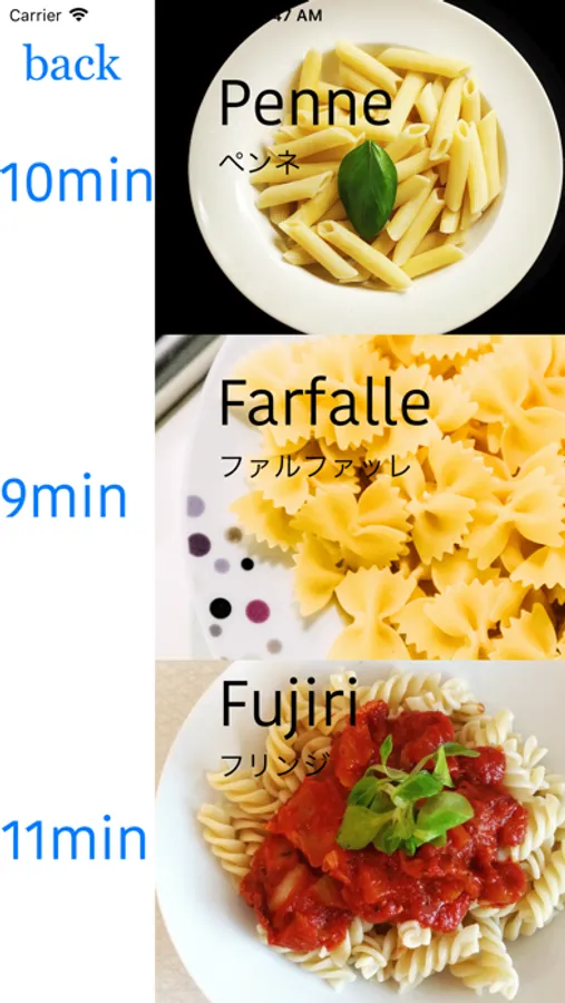 ペンネ、フリンジ、ファルファッレそれぞれのゆで時間のタイマーがあります。