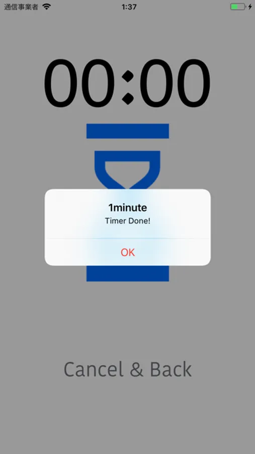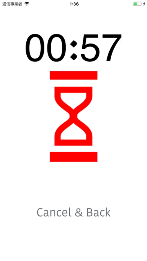 Cancel & Back のボタンを押すとタイマーがリセットされ、最初の画面に戻ります。
