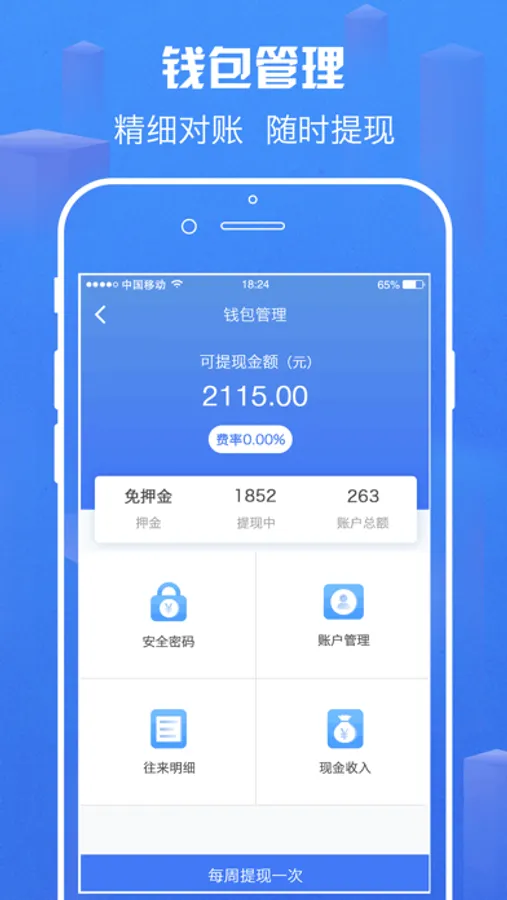 钱包安全可靠;精细流水对账;实时提现到账;让商家躺着赚钱。