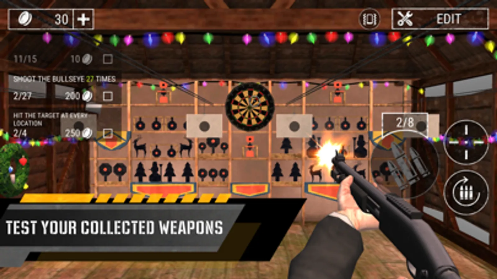 - shooting in shooting galery, on targets;