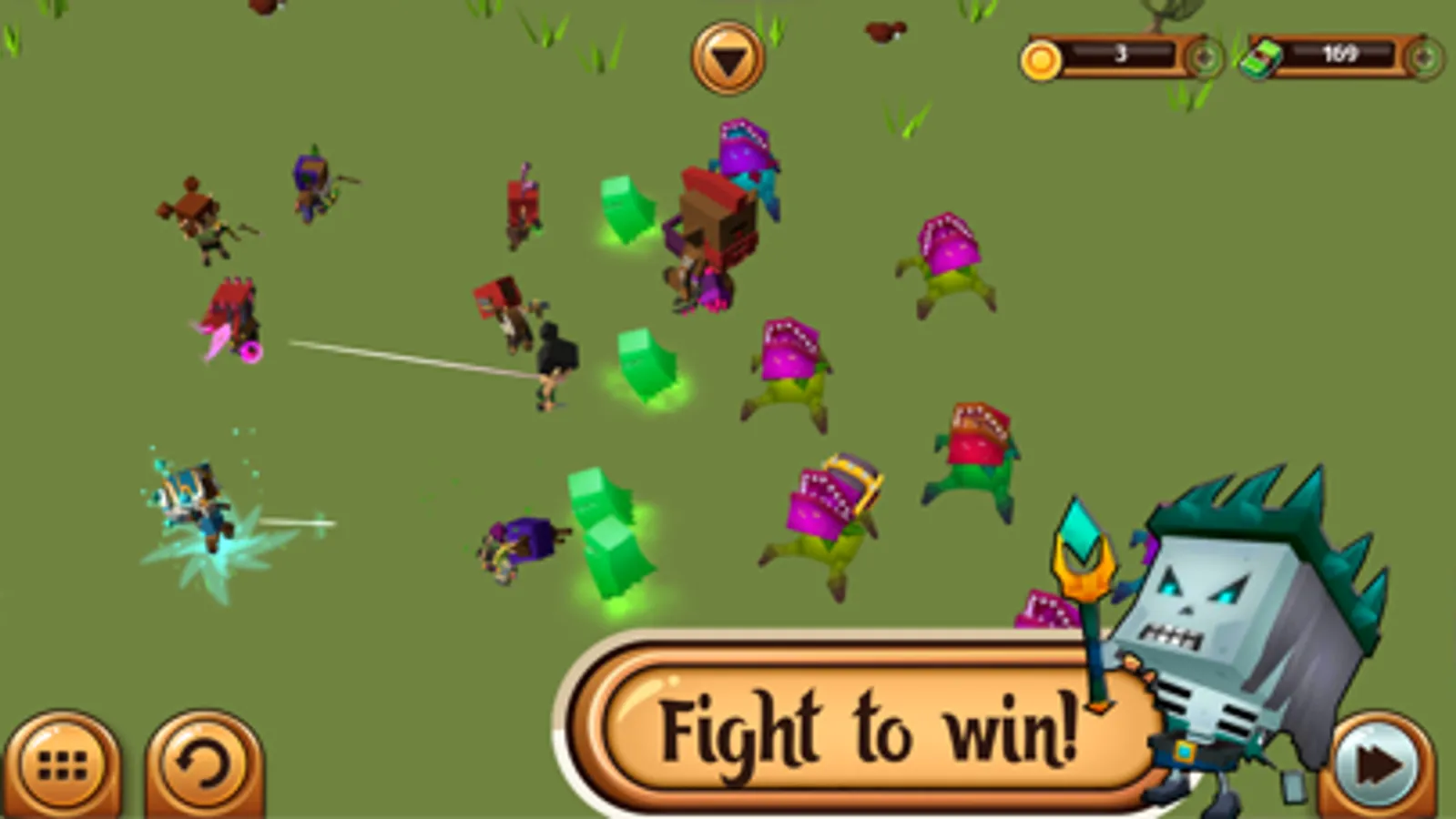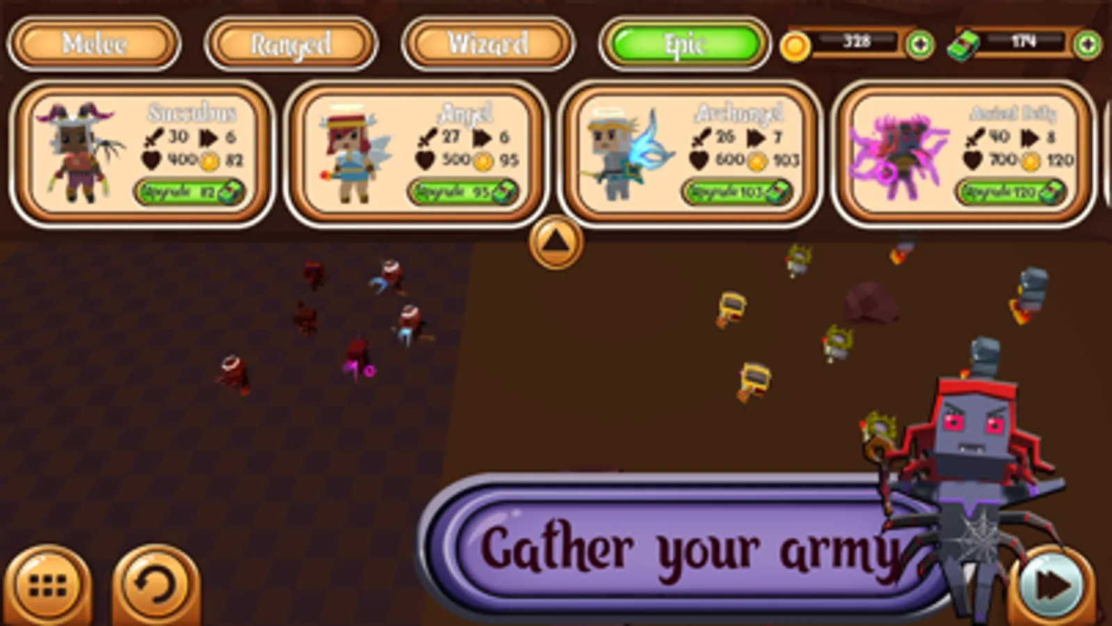 The kingdom is in danger! The terrible dragon necromancer raised the hordes of skeletons, golems, ghosts and other horrible creatures to epic battle. You're not alone. You will be helped by various warriors.Hire troops and place them on the battlefield. As soon as the battle begins, they will fight for you!