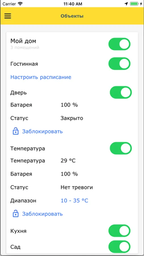 Управление датчиками интернета вещей, их расписанием и уведомлениями (для клиентов услуги «IoT для Бизнеса: Контроль»).
