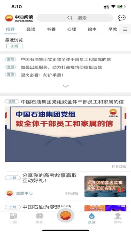 中油阅读服务于中国石油内部百万员工及家属,辅助集团做阅读引导,开展荐书、评书等活动,将百万石油员工和家属,通过企业文化联系在一起,将中油阅读打造成集团公司企业文化宣传阵地,打造成各企事业单位的职工之家。
