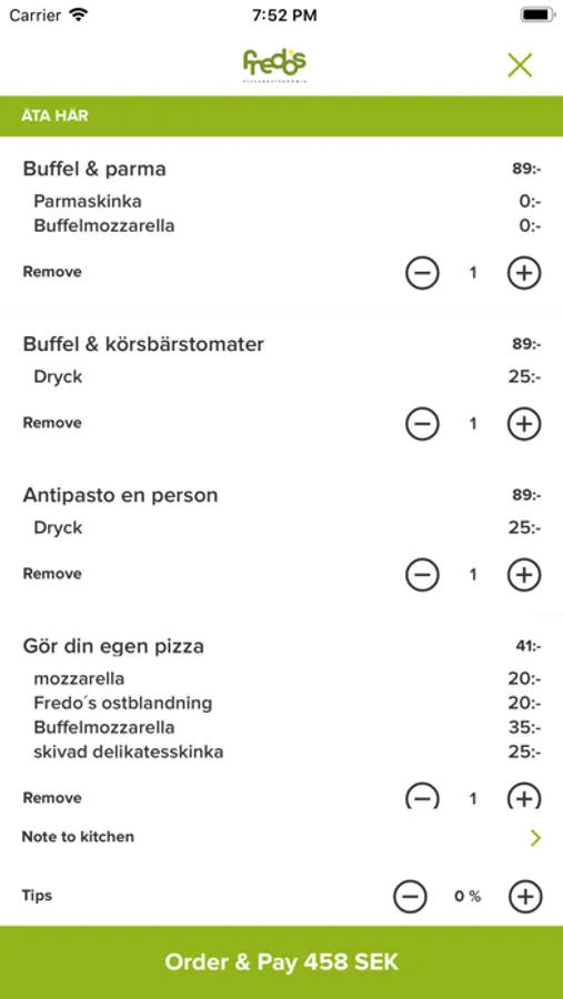 Välkommen till Fredo´s pizzagastronomia. Med vår app har du möjlighet att se, välja och beställa alla våra gormetpizzor och övriga rätter. Du kan enkelt beställa och betala för avhämtning och direkt i restaurangen . Välkommen att njuta av god mat enkelt och lätt.
