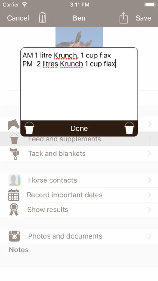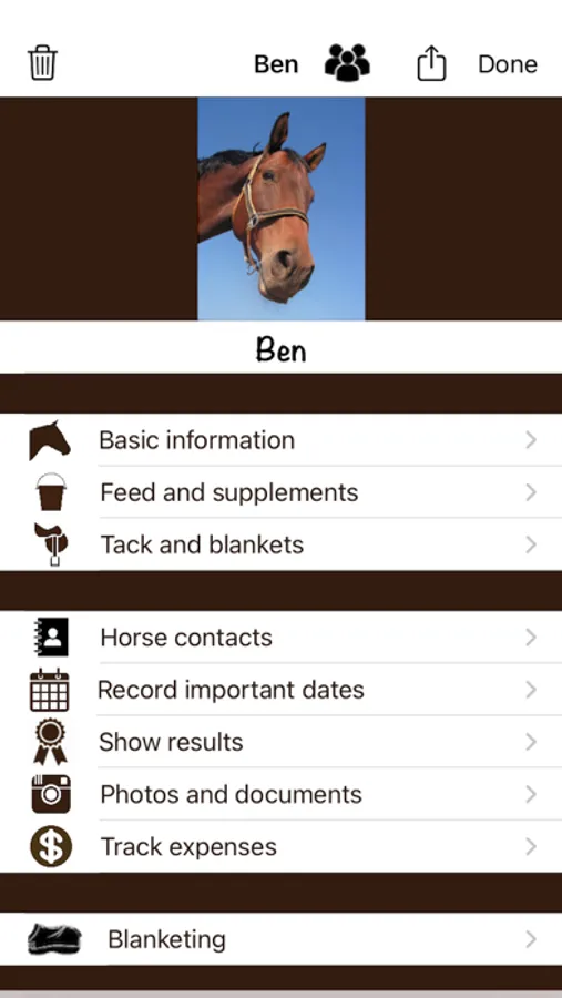 Horsekeeping will show your horse information across all your devices. As well as letting you share and edit horses with other Horsekeeping users.