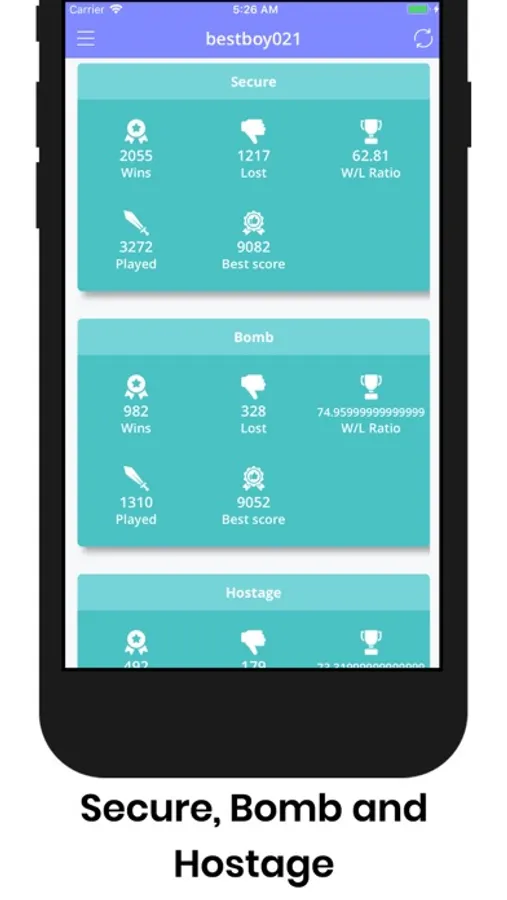 - Stats Reported: Kills, Deaths, Wins, Headshots, K/D Ratio, W/L Ratio, Kill/Match, Death/Match and more!