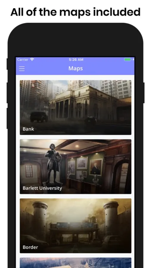 Using this app you will always have the status of your profile at hand, you can see your rank and level. Get the jump on players with detailed maps views of all included maps.