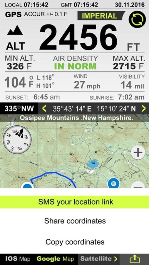 --Take photos with trip info altitude, coordinates, date ,time ,course