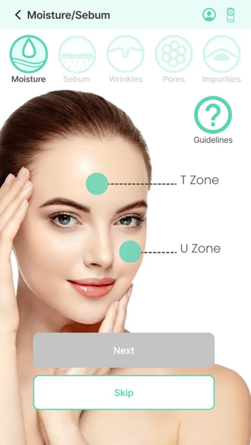 For skin: Moisture, Pores, Wrinkles, Acne, Skin type