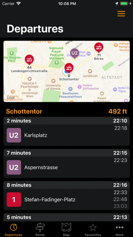 - Apple Watch app with nearby departure times
