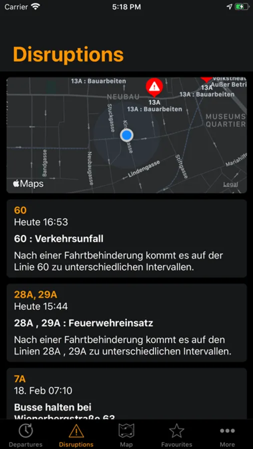 - Real time traffic disruptions and map