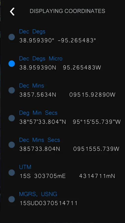 - Dec Degs (DD.dddddd°)