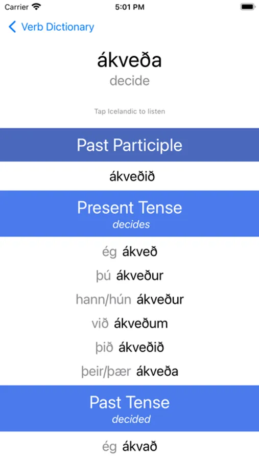 Learn and practise Icelandic verbs with this interactive verb reference and drill tool. With nearly 300 core verbs, Icelandic Verb Blitz is a clear and effective way to refresh and revise your grammar skills as well as expand your everyday vocabulary.