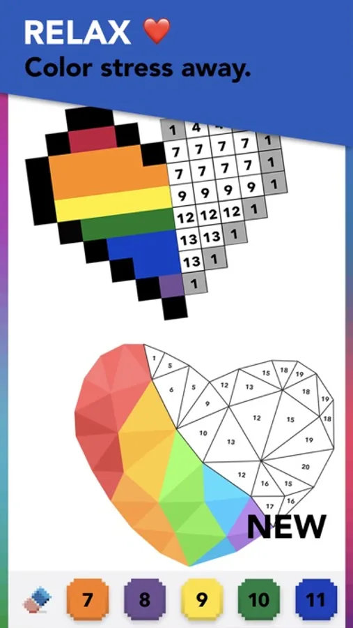 Play the latest Poly Puzzle and Pixel Color by Number game! 100+ FREE amazing pages added weekly. Join our community of users experiencing less anxiety, stress and mental relaxation with our color by number method. The game is simple: fill all the boxes in the picture with their correct colors to reveal the hidden beauty behind each puzzle.