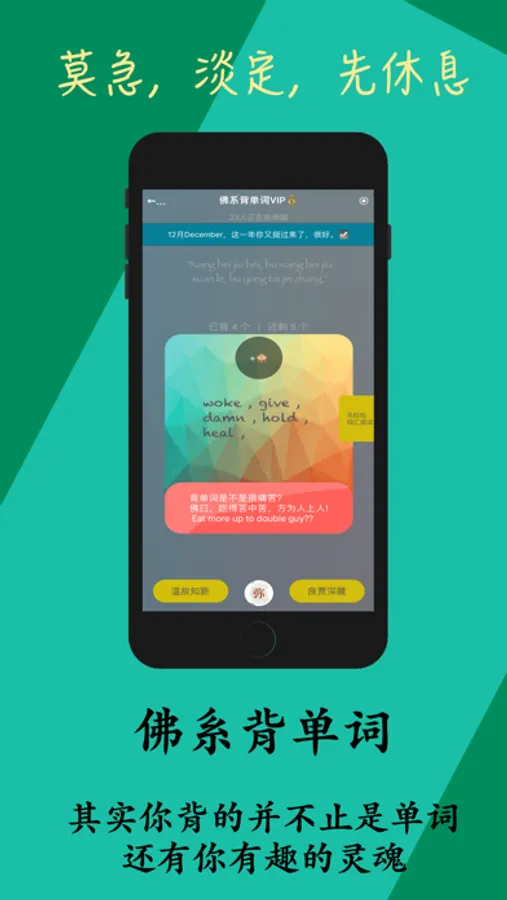 于是乎,佛系背单词横空出世,让那个优柔寡断摇摆不定容易放弃的你,从此之后拥有在不经意间随缘随性学习英文单词的绝佳机缘。